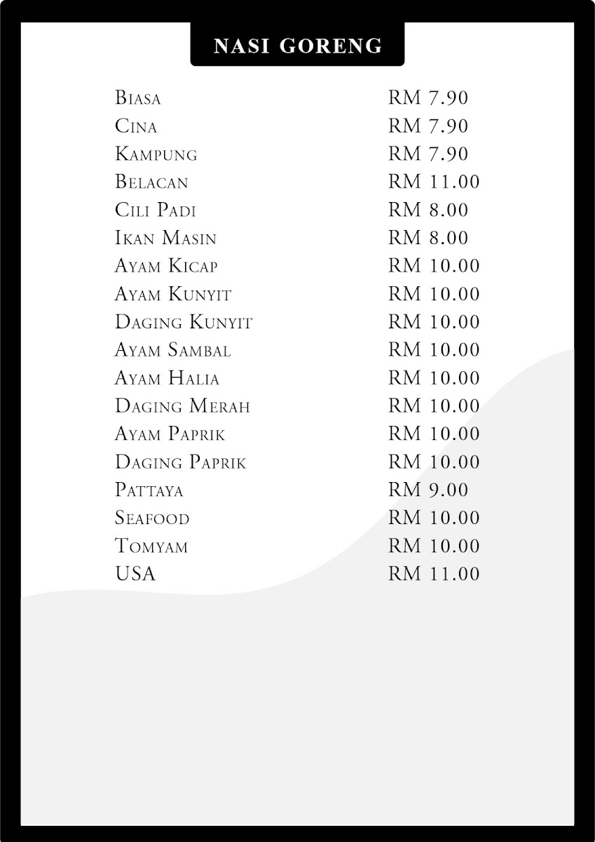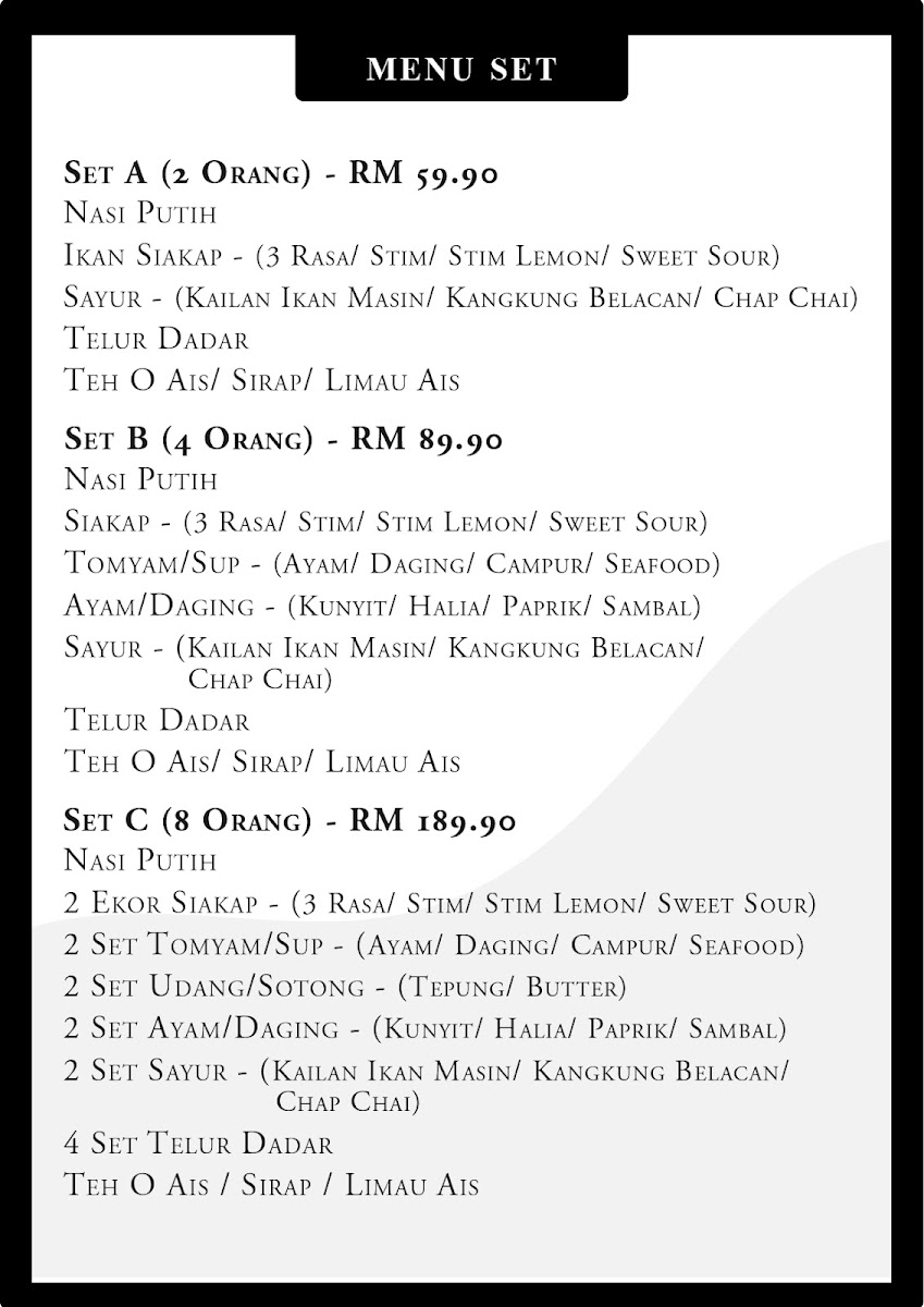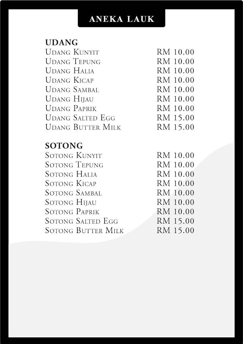 - Ayam Varieties: Tender chicken dishes like Ayam Halia and Ayam Kicap, each crafted to tantalize your taste buds at MYR 12.00.